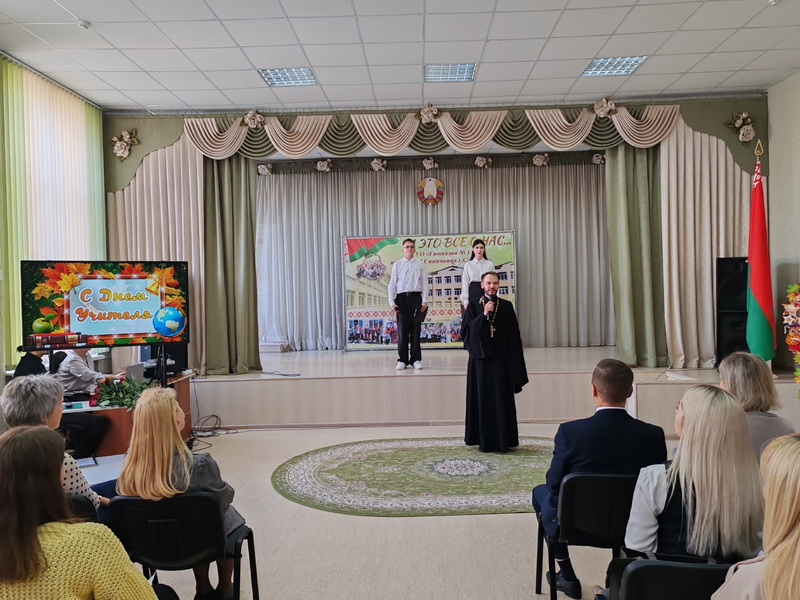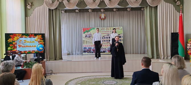3 октября клирик Свято-Троицкого собора г. Слонима иерей Николай Савицкий принял участие в мероприятии по случаю празднования Дня учителя в городской гимназии №1 им. Ф.М. Синичкина.