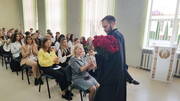 Священник поздравил педагогов и вручил цветы с самыми добрыми пожеланиями.