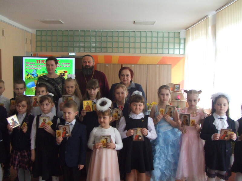 Священник поздравил с Пасхой Господней учеников Вселюбской СШ