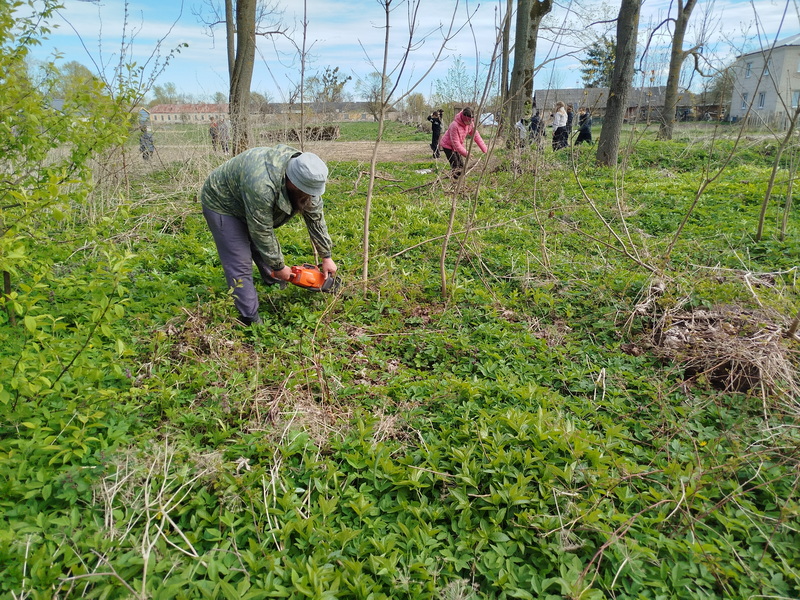 В ходе мероприятия была удалена сорная поросль и кустарники.