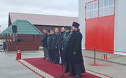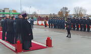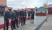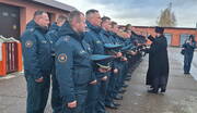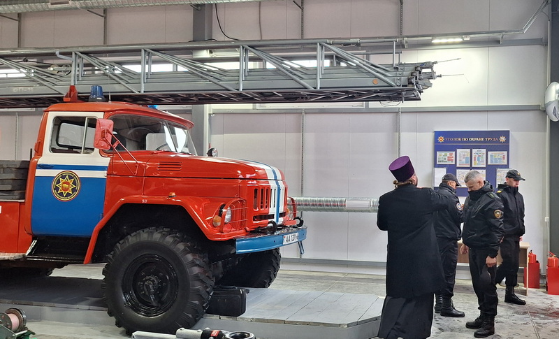 Священник поздравил коллектив спасателей с торжественным открытием нового объекта, подарил на молитвенную память икону Божией Матери «Неопалимая Купина» и окропил святой водой новый гараж и личный состав РОЧС.