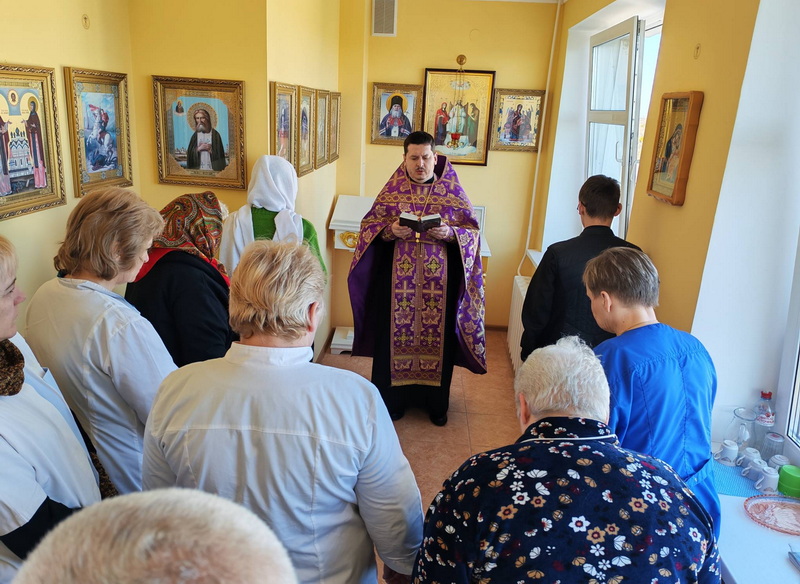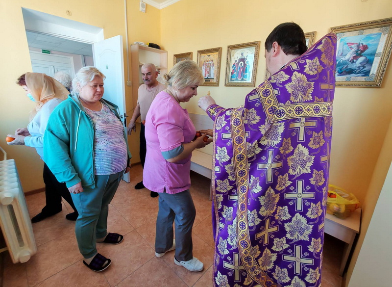 После совместной молитвы священник поздравил пациентов и медицинский персонал с воскресным дня, пожелал всем душевного и телесного здравия и спасения души, а также вручил угощения.