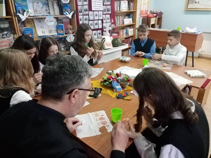 24 апреля настоятель храма Казанской иконы Божией Матери аг. Шиловичи Слонимского благочиния протоиерей Вадим Петлицкий провел встречу с детьми прихода в сельской библиотеке.