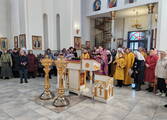 15 марта, в Неделю Крестопоклонную и пятидесятую годовщину епископской хиротонии Святейшего Патриарха Московского и всея Руси Кирилла, духовенство Новогрудской епархии совместно с прихожанами храмов Новогрудского, Слонимского, Дятловского и Кореличского благочиний вознесло благодарственные молитвы о своём Патриархе.