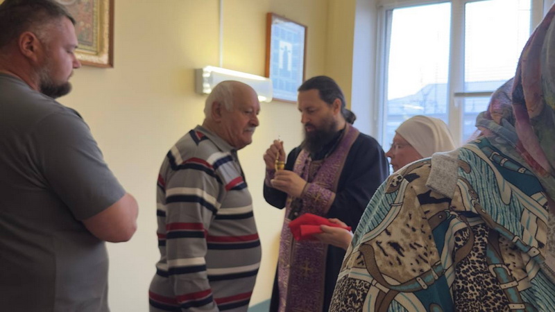 Болящие имели возможность исповедоваться и причаститься Святых Христовых Таин. Тех, кто по состоянию здоровья не смог прийти в комнату для молитвы, священнослужители причастили в палатах.
