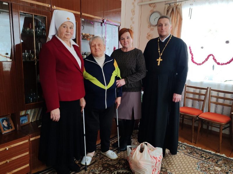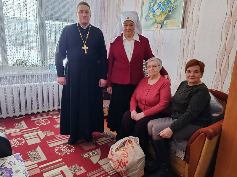 12 января настоятель храма святых апостолов Петра и Павла г.п. Кореличи иерей Игорь Пирог и старшая сестра Сестричества в честь святой страстотерпицы царицы Александры С.М. Дунец совместно с представителями центра социального обслуживания населения Кореличского района в рамках республиканской благотворительной акции «От всей души» посетили одиноко проживающих граждан: С.Е. Губенкову, А.И. Пыпареву, Г.С. Комар, Т.Т. Мохань, М.А. Данько, А.П. Монич, Е.В. Лейко, А.И. Браго, Н.И. Масюкевич, Л.П. Сураго.