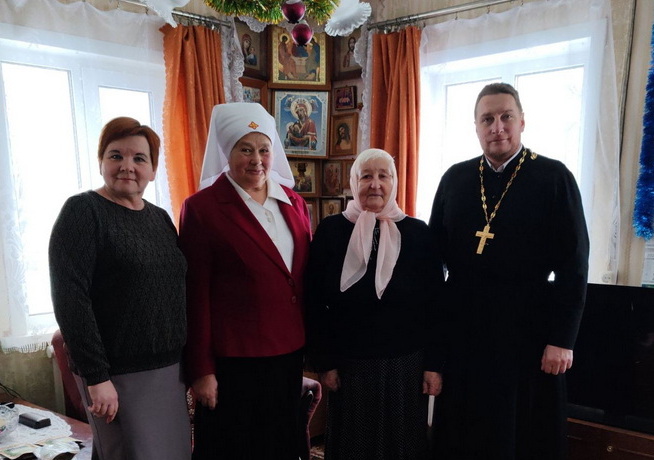 Священнослужитель поздравил пожилых граждан с Рождеством Христовым и с наступающим праздником Крещения Господня, пожелал им крепкого здоровья, мира, добра, милости Божией от родившегося Богомладенца Христа и передал продукты питания.