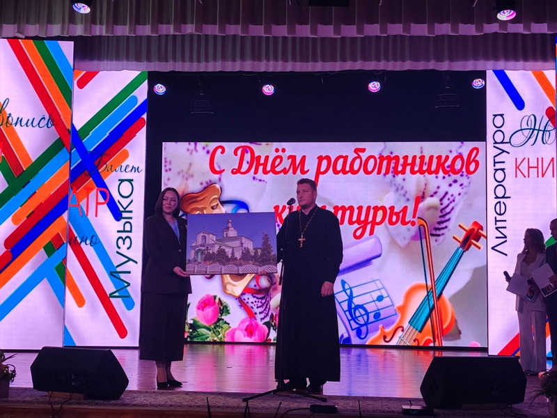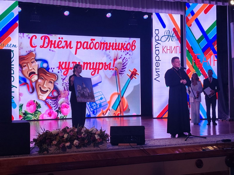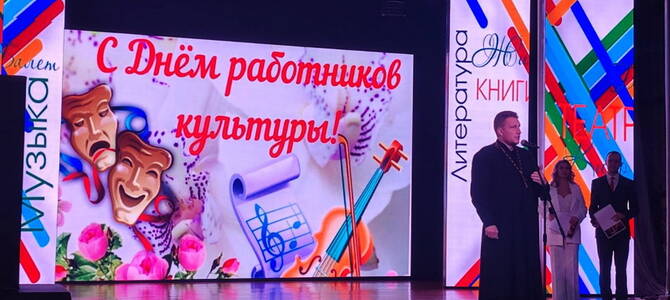 Священник поздравил работников и ветеранов культуры с профессиональным праздником, отметив, что культура в различных ее проявлениях должна воспитывать человека и направлять его к созиданию добра.