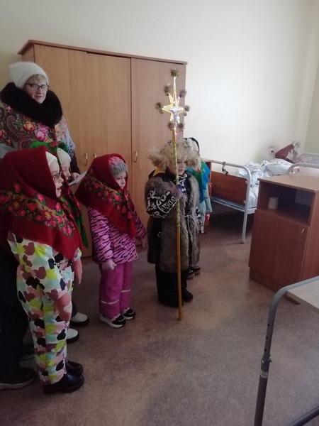 14 января воспитанники Любчанского детского сада вместе с воспитателем А.М. Гирис посетили больницу сестринского ухода и пожилых людей поселка и поздравили их с зимними церковными праздниками.