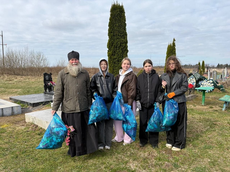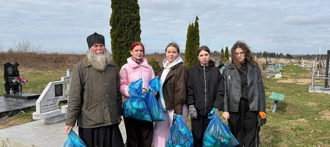 Священник и старшеклассники потрудились на приходском сельском кладбище д. Попковичи, где навели порядок на могилах, за которыми уже некому ухаживать.