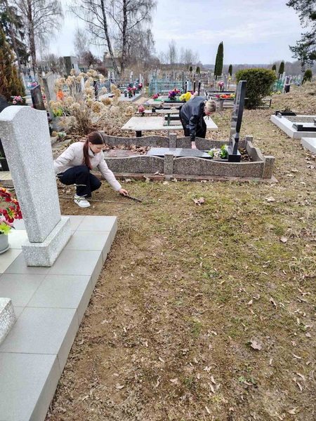 1 апреля настоятель храма святых апостолов Петра и Павла аг. Валевка иерей Евгений Запольский вместе с учащимися 8-11 классов ГУО «Валевский учебно-педагогический комплекс детский сад-средняя школа» в рамках епархиальной акции «У Бога все живы» провели уборку приходского кладбища.