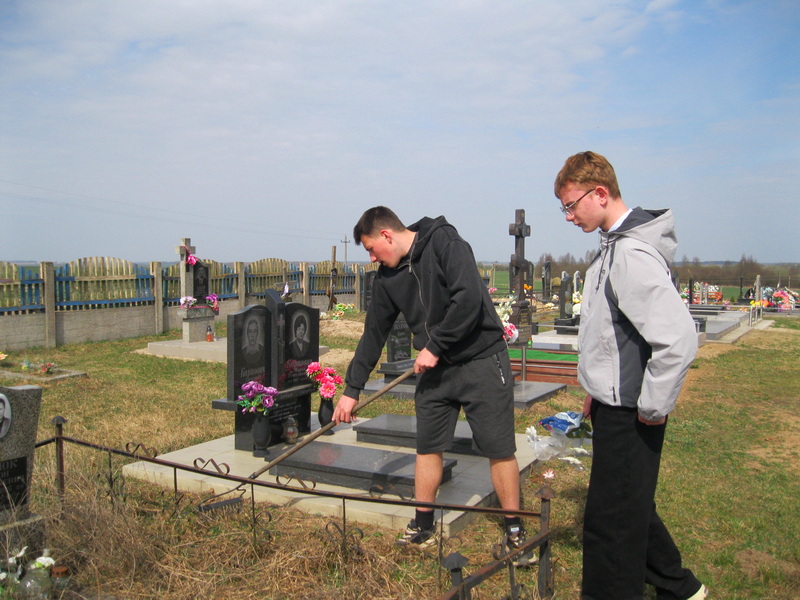 1 апреля настоятель храма Рождества Пресвятой Богородицы аг. Мижевичи протоиерей Николай Щаюк и учащаяся молодежь прихода приняли участие в епархиальной акции по наведению порядка на кладбищах к празднику Пасхи «У Бога все живы».