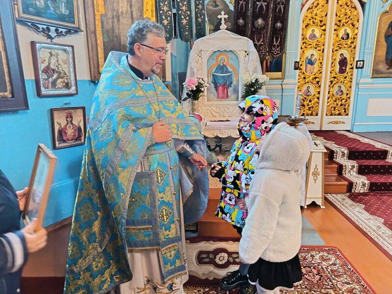 Настоятель храма протоиерей Вадим Петлицкий рассказал школьникам историю праздника, после чего дети поставили свечи о здравии своих мам.