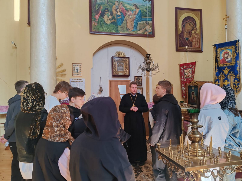 24 марта настоятель храма святых апостолов Петра и Павла г.п. Кореличи иерей Игорь Пирог встречал в храме учащихся Жуховичской средней школы.