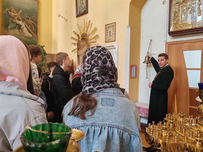Священник рассказал детям историю храма и святынь, находящихся в нем, и о его устройство. После экскурсии иерей Игорь ответил на вопросы присутствующих, после чего все поставили свечи о здравии своих родных.