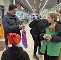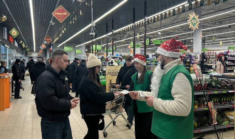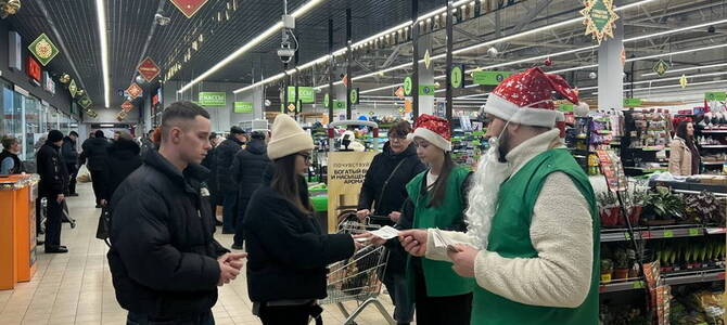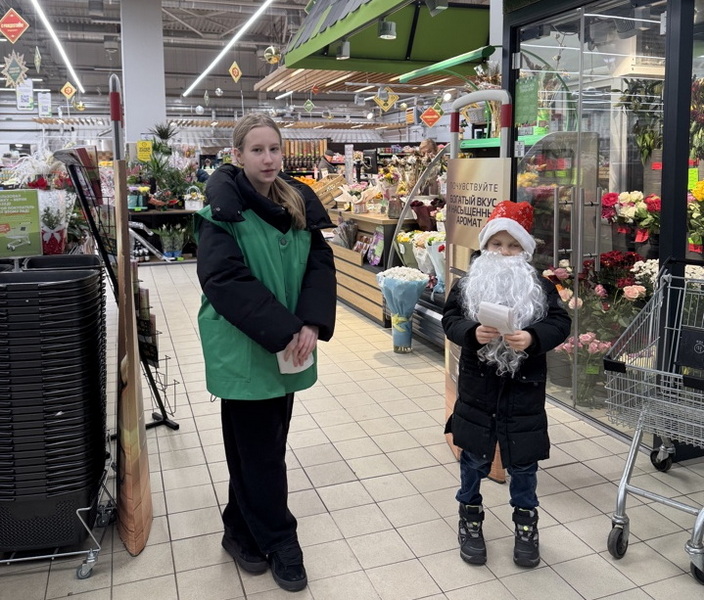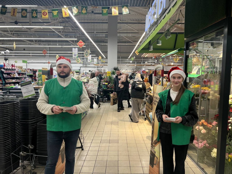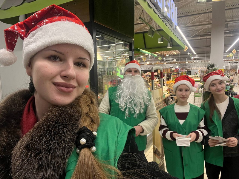 Традиционно участники молодежного клуба «Симфония» организуют в ТЦ «Е-СИТИ» пункт сбора пожертвований. В последние дни декабря они дежурят в торговом центре, рассказывая покупателям о цели акции и приглашая их внести посильный вклад, раздавая информационные листки.