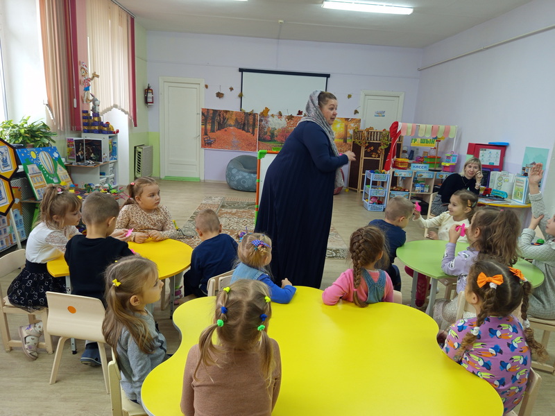 Сотрудник епархиального отдела религиозного образования и катехизации З.А. Сурядова рассказала воспитанникам историю и традиции праздника Масленицы, объяснила, почему последнее воскресенье перед Великим постом называется Прощеным, и почему важно просить прощения. Дети также выполнили творческое задание.