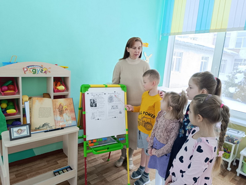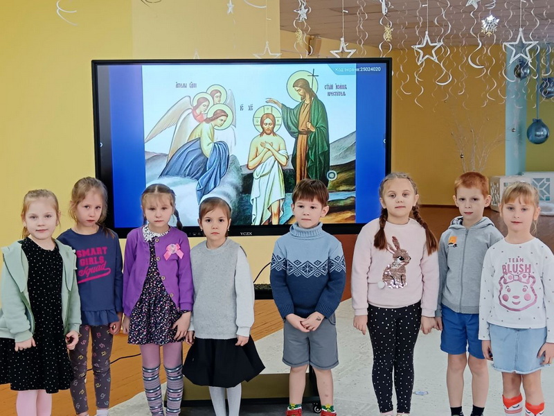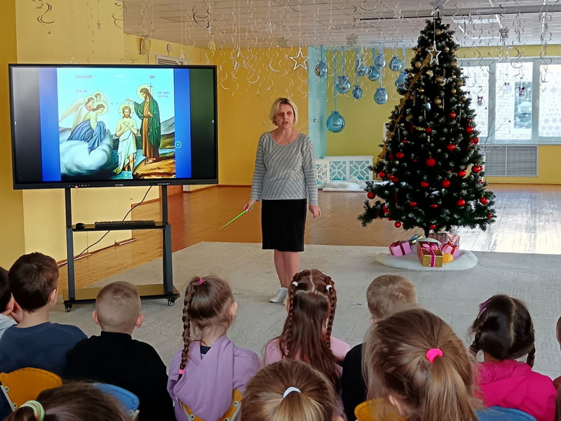 Педагоги В.А. Лишик и О.С. Костюкевич познакомили детей с историей и традициями праздника Крещения Господня, объяснив его значение. В ходе беседы малыши рассуждали о таких добродетелях, как щедрость, и о пороках — жадности, понимая, что истинная щедрость — это не только дарение вещей, но и дарение доброты, внимания и милосердия.