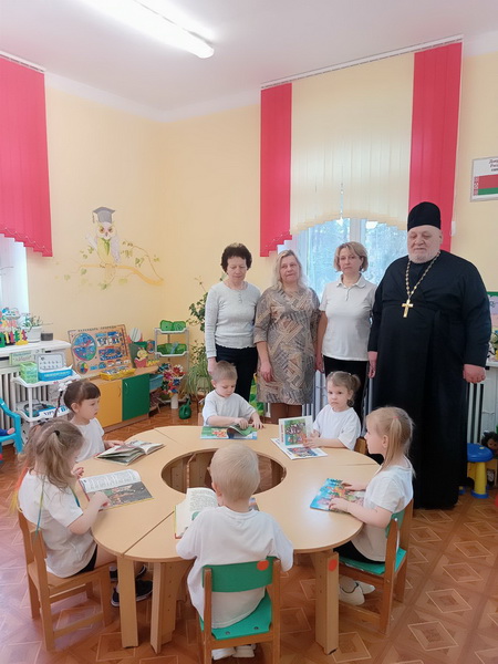 7 марта клирики Дятловского благочиния протоиерей Николай Пинчук (настоятель храма святых благоверных князей Бориса и Глеба д. Накрышки), иерей Иоанн Ярович (настоятель храма святителя Николая Чудотворца д. Ногородовичи), иерей Алексей Степанович (клирик собора святых новомучеников и исповедников Церкви Русской г. Дятлово), а также воспитатели дошкольного образования О.В. Шевко (г. Дятлово) и Е.И. Улита (г.п. Новоельня) провели «Уроки Доброты» в детских садах Дятловского благочиния на темы: «Святые. Кто они?», «Мама - слово дорогое», «Заповедь – не укради». В конце занятий дети выполняли творческие задания.