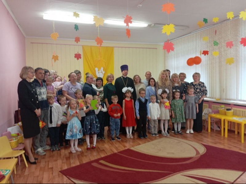 Священнослужитель поздравил воспитателей, родителей и детей с прошедшими праздником Покрова Пресвятой Богородицы и рассказал историю этого праздника.
