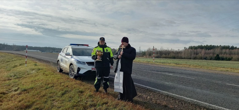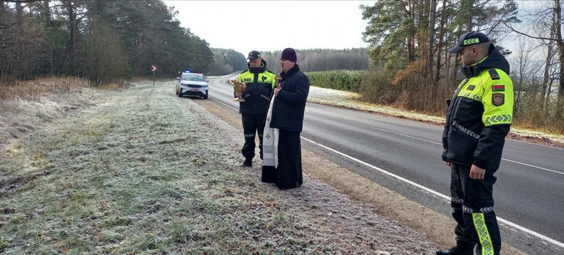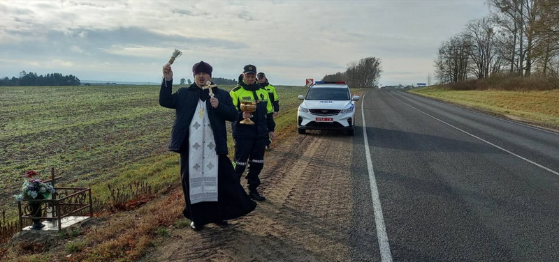 16 ноября, во Всемирный день памяти жертв дорожно-транспортных происшествий, настоятель собора святых новомучеников и исповедников Церкви Русской г. Дятлово иерей Иоанн Кисель совместно с сотрудниками МО ГАИ Слонимского РОВД освятил аварийно-опасные участки автомобильных дорог Дятловского района.
