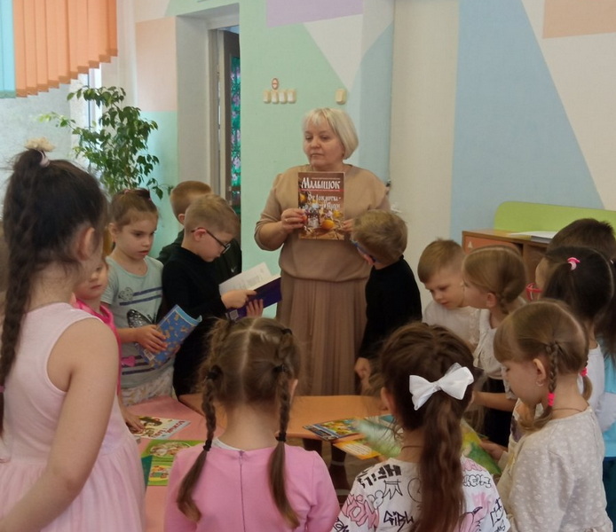 В детском саду №2 руководитель кружка Н.О. Терешко говорила с детьми на тему: «Наши любимые книги». Малыши познакомились с выставкой книг, узнали, что книги бывают разными — для чтения, для игр, для познания мира. Особое внимание уделили Библии. С помощью игрового задания «Да — нет» дети вспомнили правила обращения с книгами, а затем посмотрели мультфильм «Библиотека», который помог им лучше понять ценность книг и чтения.
