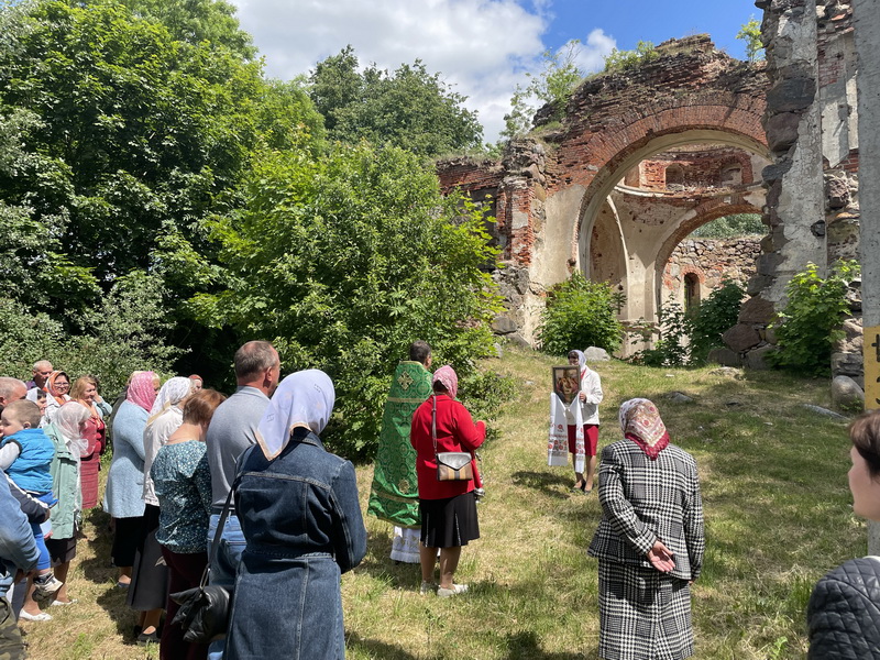 В праздничный день молились у разрушенного храма Святой Живоначальной Троицы в д. Березовец