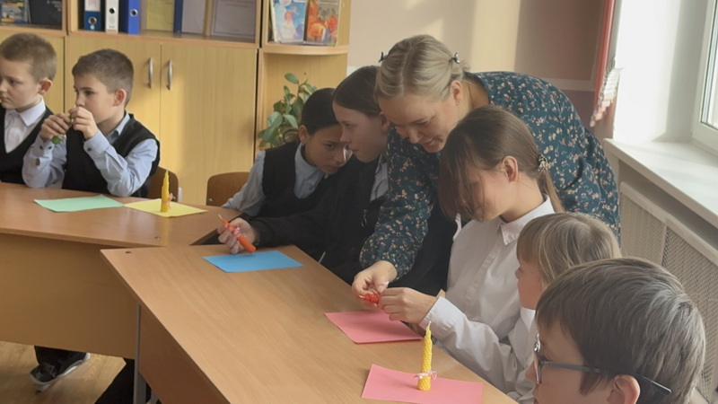 В школе аг. Селявичи поговорили о празднике Сретения Господня и изготовили свечи