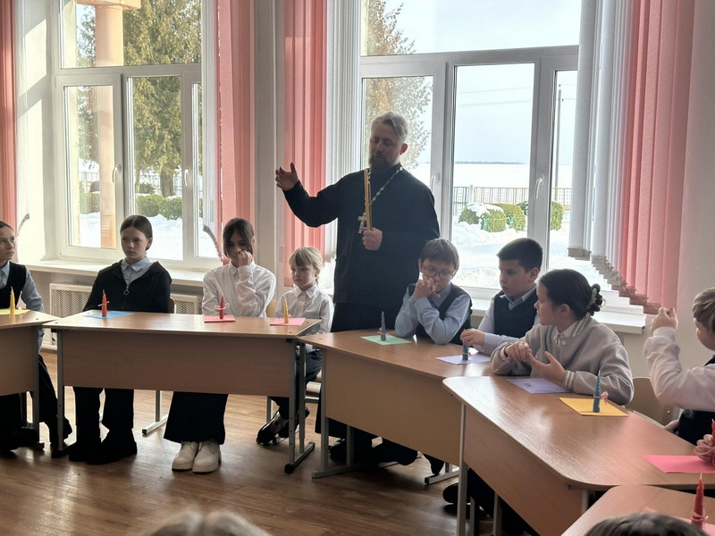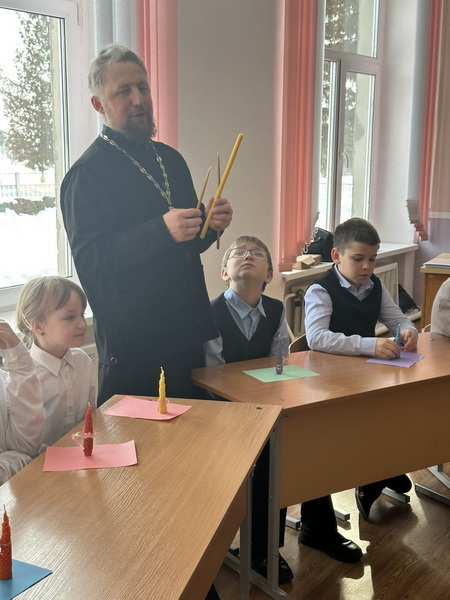 Священник рассказал присутствующим о празднике Сретения Господня, обьяснив его суть и значение. Доступно пересказал евангельскую историю о праведном Симеоне, который всю жизнь ждал появления Спасителя, и о том, как важно уметь ждать и верить.