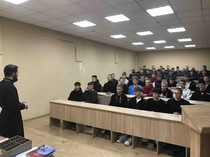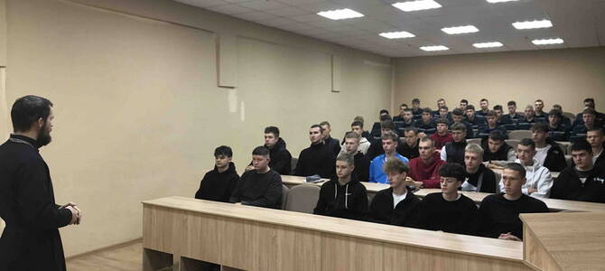 12 марта клирик храма святых благоверных князей Бориса и Глеба г. Новогрудка иерей Евгений Запольский побеседовал с учащимися 1 курса Новогрудского колледжа технологий и безопасности на тему: «Великий пост».