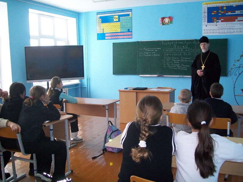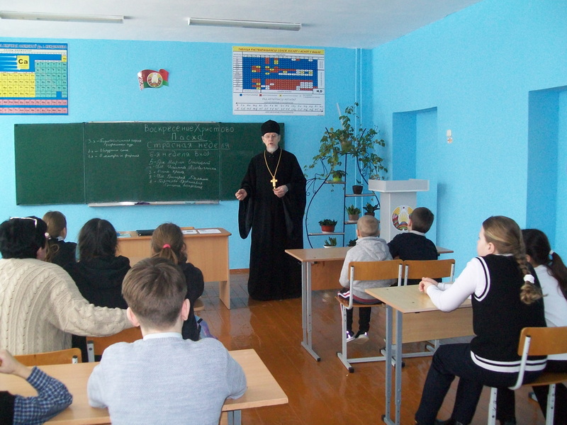 18 февраля настоятель храма Святой Живоначальной Троицы аг. Деревная Слонимского благочиния протоиерей Анатолий Ежевский провел беседу с учащимися 3-7 класов Деревновской базовой школы на тему: «Великий пост - время покаяния, воздержания и подготовки души к празднику».