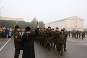 После приветствия и поздравительных слов священник вознес молитву на начало всякого доброго дела и окропил святой водой всех военнослужащих.