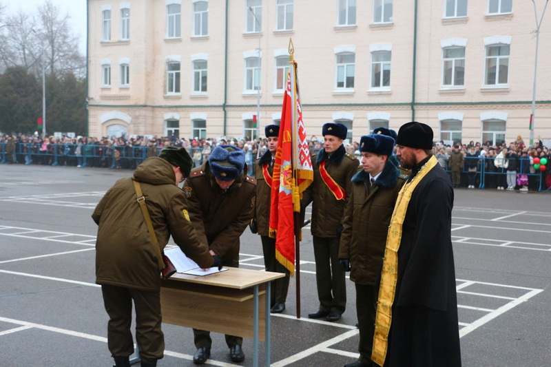 22 ноября на строевом плацу 11-й отдельной гвардейской механизированной бригады г. Слонима состоялось торжественное принятие воинской присяги молодым пополнением — около 400 новобранцев дали клятву на верность белорусскому народу и своему Отечеству.