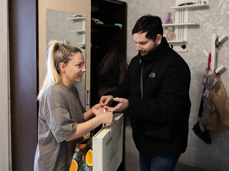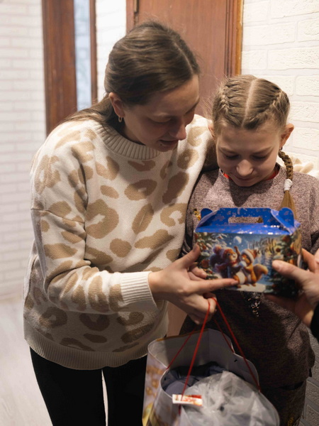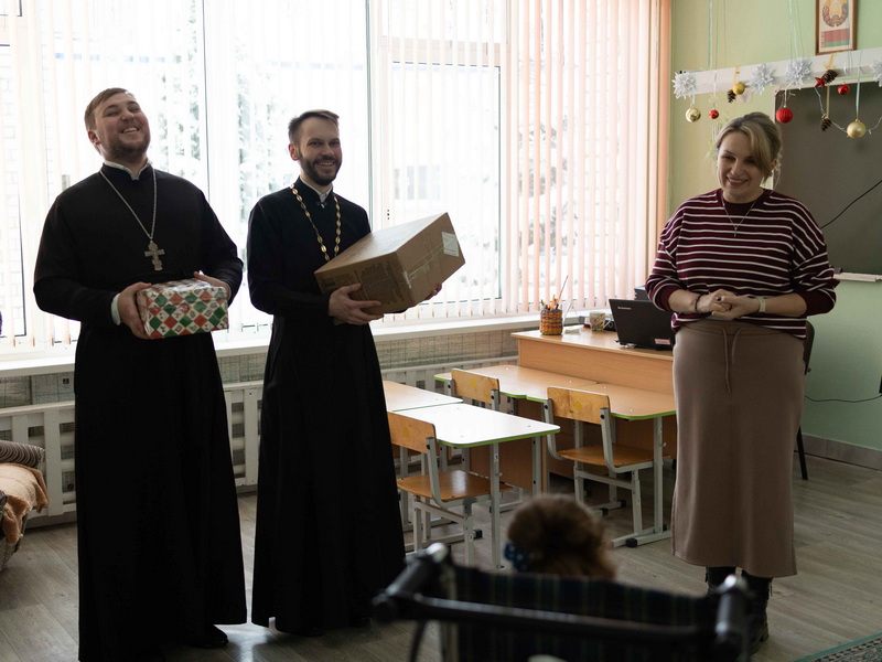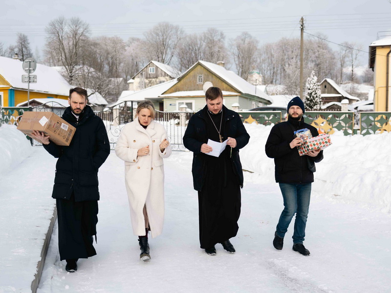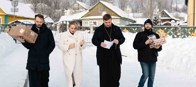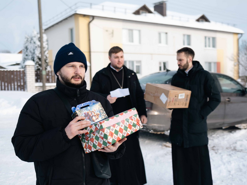Руководитель миссионерского отдела иерей Николай Савицкий, клирик Свято-Троицкого собора г. Слонима, сотрудник миссионерского отдела в Новогрудском благочинии иерей Илия Герасимук, настоятель строящегося храма в честь святой блаженной Ксении Петербургской г. Новогрудка, а также участники молодежного клуба «Симфония» посетили пять семей в Новогрудке и вручили им подарки.