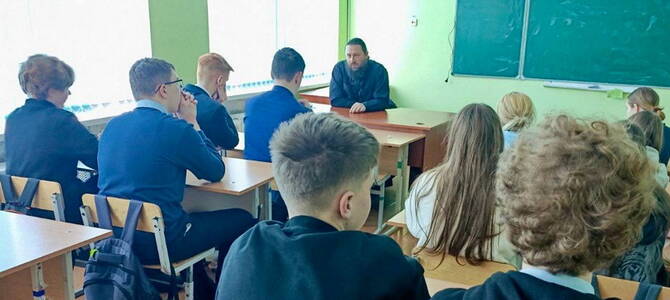 6 февраля настоятель храма иконы Божией Матери «Нечаянная Радость» г. Новогрудка протоиерей Вадим Кузьмич провел духовно-просветительскую беседу с учащимися 9 класса городской гимназии.