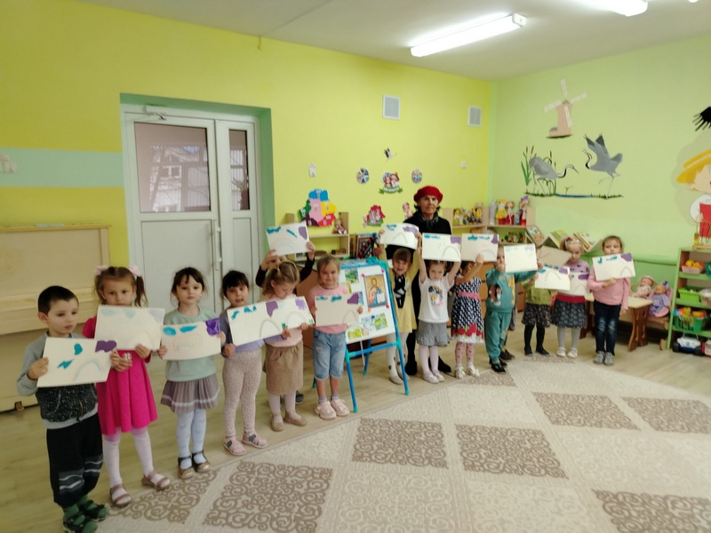 С малышами говорили о сотворении неба, делали аппликации, читали стихи и рассказ «На кого похоже мое облако», играли в тематическую игру.