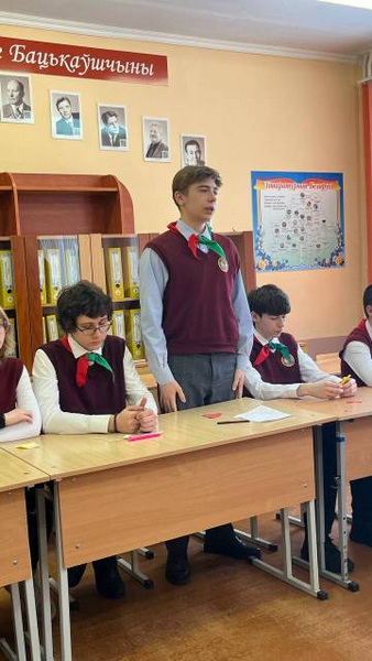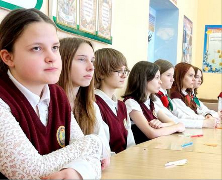 Педагог и учащиеся 8 «Б» класса подготовили важную информацию и вопросы для обсуждения с экспертами. В качестве экспертов пригласили ветерана Вооруженных сил, сотрудника военного комиссариата подполковника И.А. Романюка и психолога Новогрудской ЦРБ Р.П. Хотян. Участники мероприятия беседовали на тему: «Высшая ценность — Отчизне служение».