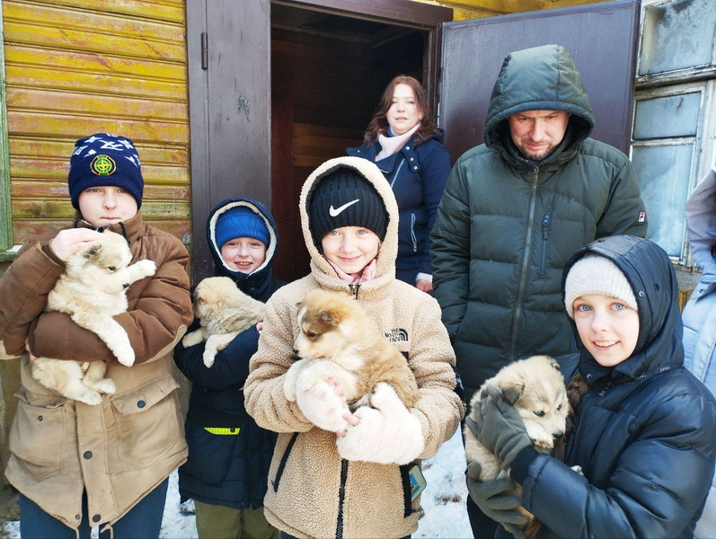 Воспитанница М. Гиз, ее родители, братья и сестричка с радостью приняли одного из щенков в свою большую семью.
