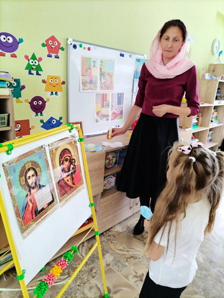 Руководитель кружка А.Н. Золотова провела с малышами разновозрастных групп занятия на тему «Послушание». Говорили о 5-й заповеди, любви родителей к детям и ответной любви детей к родителям, которая должна проявляться в послушании, доверии, помощи и заботе.