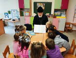 С 15-17 октября клирики Дятловского благочиния протоиерей Николай Пинчук (с. Накрышки), протоиерей Георгий Ярмолич (г.п. Козловщина), а также воспитатель дошкольного образования А. И. Шашко (аг. Гезгалы) провели беседы в рамках занятий кружка «Уроки Доброты» с воспитанниками детских садов Дятловского района на темы: "Покров Божией Матери", "Почитание родителей" и "Молитва".