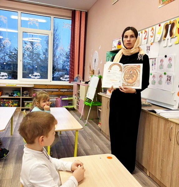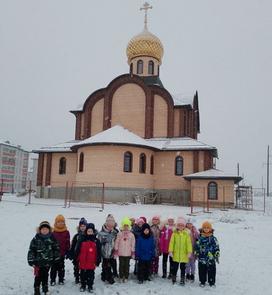 Малыши детского сада №8 познакомились с темой «Православный храм — Дом Божий». Они раскрашивали тематические рисунки, а во время прогулки побывали у строящегося храма в честь святой блаженной Ксении Петербургской.