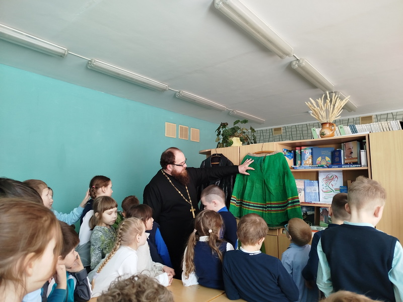 5 марта настоятель храма святого великомученика Димитрия Солунского аг. Щорсы Новогрудского благочиния иерей Димитрий Почебут провел интерактивную беседу с учащимися младшей возрастной группы Щорсовской средней школы на тему: «Защитники Отечества - кто они?».