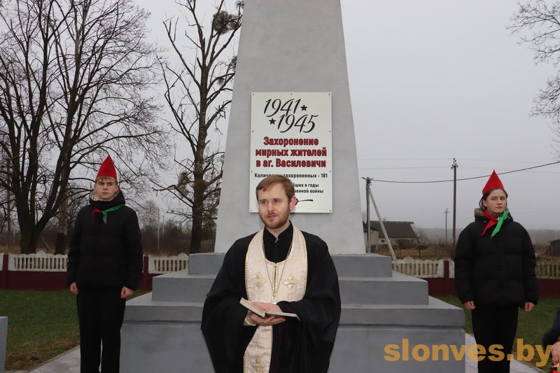 16 декабря клирик Спасо-Преображенского собора г. Слонима иерей Павел Моряков принял участие в митингах в память о жертвах фашизма на слонимской земле, которые прошли у мемориальных комплексов в деревнях Василевичи, Павловичи и Низ.