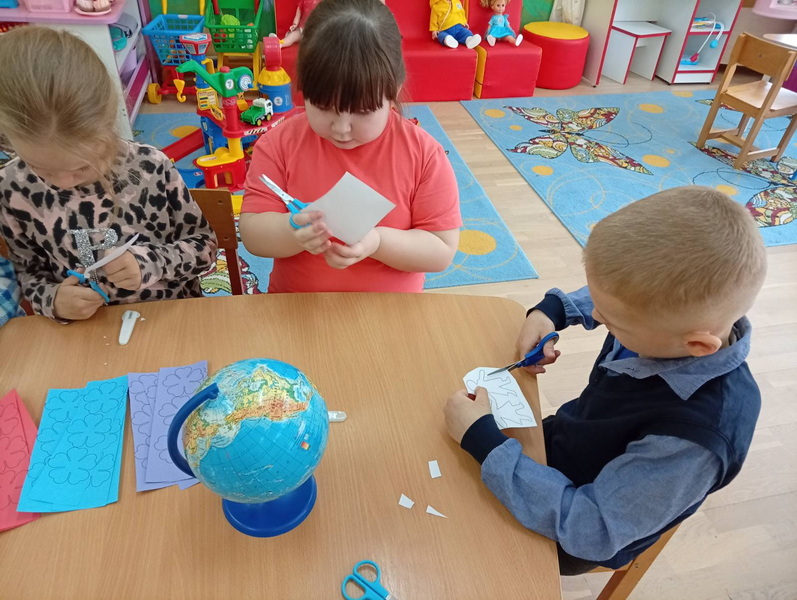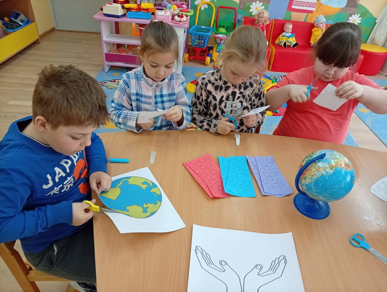 Вместе с руководителем кружка С.В. Петриман дети вспоминали историю сотворения мира, рассуждали, что нужно делать, чтобы планета Земля оставалась чистой и цветущей, а люди на жили в мире и согласии.