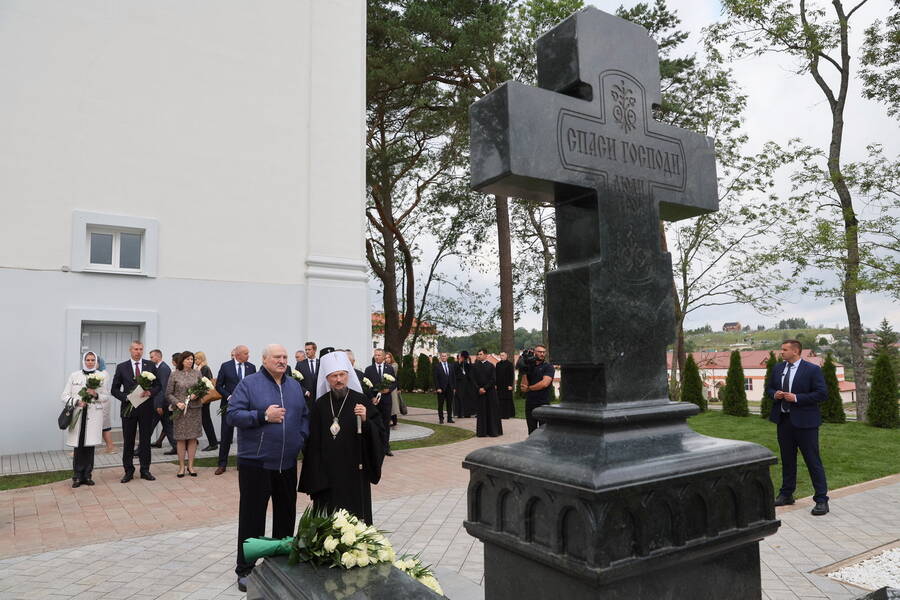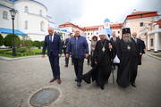 Главу государства встречали митрополит Минский и Заславский Вениамин, Патриарший Экзарх всея Беларуси, и наместник монастыря архиепископ Новогрудский и Слонимский Гурий.