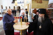 Посещение монастыря началось со Свято-Успенского собора, где был совершен молебен и зажжены свечи перед чудотворной Жировичской иконой Божией Матери.