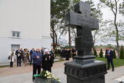 Также Александр Лукашенко посетил место погребения первого Патриаршего Экзарха всея Беларуси Митрополита Филарета (Вахромеева) на братском кладбище монастыря и возложил к надгробию букет белых роз.