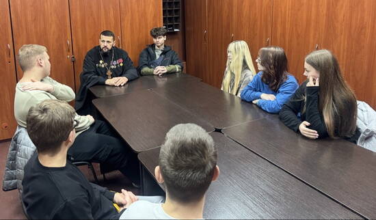 Священник беседовал с юнармейцами о патриотизме и нравственных качествах воина.