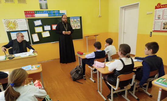 Священник обратился к школьникам с напутственным словом об исполнении 5 Заповеди о почитании родителей.