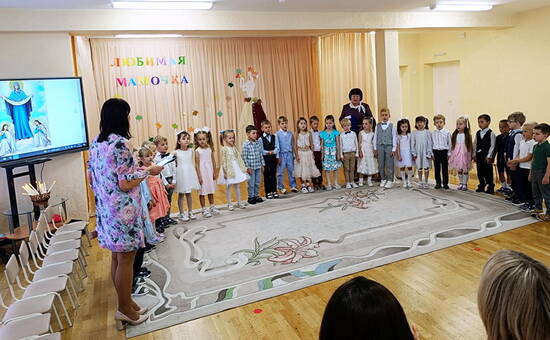 Воспитатели Н.В. Жулинская, О.В. Маркевич и А.М. Гирис и музыкальные руководители подготовили с ребятами праздничные выступления для мам с инсценировками, танцами, стихами и песнями, посвященными Божией Матери и материнской любви.
